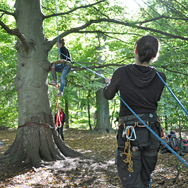 Se skoven fra toppen af et bøgetræ. Med reb og klatreseler sanser og oplever eleverne skoven og dens træer på en anderledes måde. Samtidig udfordres eleverne på deres motorik, højdeskræk - og evne til at samarbejde.