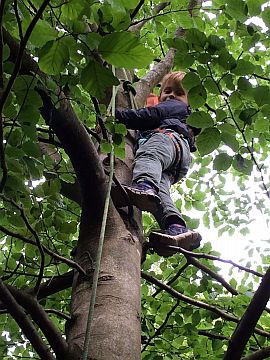 Med reb, klatreseler og vejledning fra en uddannet klatreinstruktør får børnene på dette forløb chancen for at klatre lidt højere op end normalt. De kan udfordre sig selv fysisk og mentalt i træet - hvor langt tør jeg egentlig klatre?